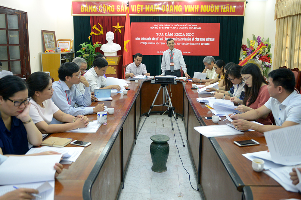 Sáng 29/6/2017, Viện Hồ Chí Minh và các lãnh tụ của Đảng thuộc Học viện Chính trị quốc gia Hồ Chí Minh, chủ trì tổ chức Tọa đàm khoa học với chủ đề Đồng chí Nguyễn Văn Cừ - Nhà lãnh đạo xuất sắc của Đảng và cách mạng Việt Nam. PGS, TS Phạm Ngọc Anh, Viện trưởng, chủ trì Tọa đàm. Đây là hoạt động ý nghĩa nhân kỷ niệm 105 năm ngày sinh của đồng chí.